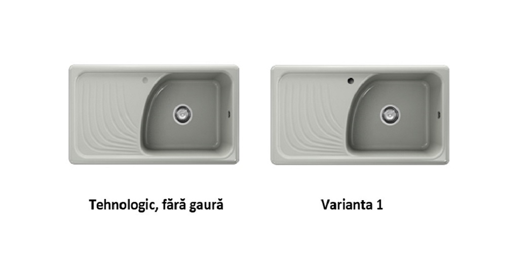 Modelul oferă posibilitatea de selectare a găurii / lor tehnologice pentru montarea bateriei și / sau a dozatorului de săpun lichid.